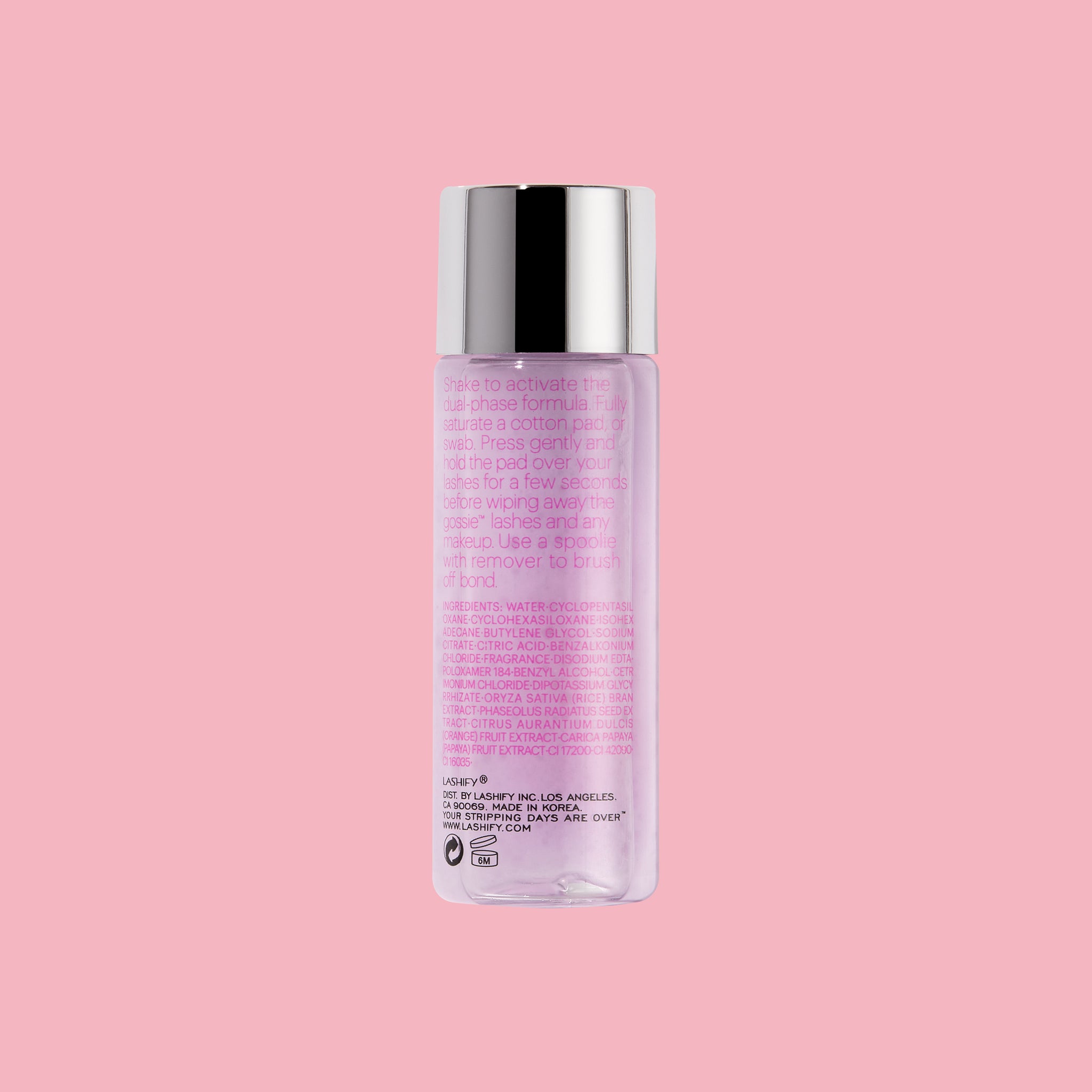 Shake Gossie™ Bond Remover to activate the dual-phase formula. Fully saturate a cotton pad or swab. Press gently and hold the pad over your lashes for a few seconds before wiping away Gossie™ lashes and any makeup. Use a spoolie with remover to brush off bond.
